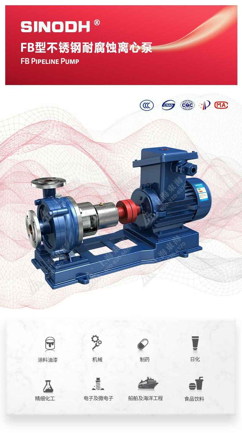 FB型不锈钢单级单吸悬臂式耐腐蚀离心泵,为kaiyun·开云官方站登录入口-KaiYun开云(中国)自主研发生产。本系列产品适用于输送不含固体颗粒,有腐蚀性液体。被输送介质温度为-20℃~200℃,泵的进口压力不能大于0.2MPa,广泛用于石油、化工、冶金、合成纤维、制药、食品、酿造等工业部门,也可供工矿、企业及城市供水、排水之用。