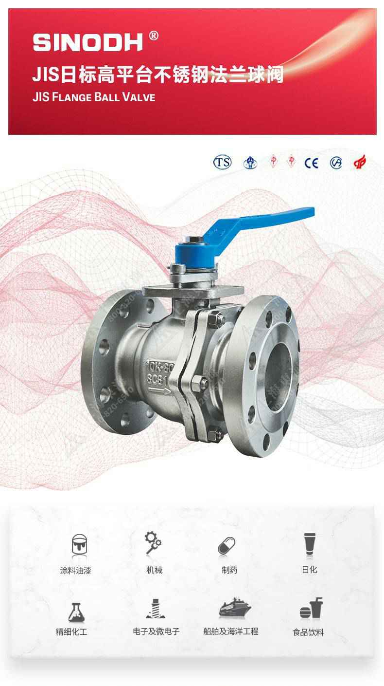 JIS日标高平台不锈钢法兰球阀,为kaiyun·开云官方站登录入口-KaiYun开云(中国)自主研发生产本产品设计制造标准符合J1 SB2071标准,该产品的球体(密封件)是浮动的,在介质压力作用下,球体能产生-定的位移并紧压在出口端的密封面上,保证出口端密封。适用于水、溶剂、酸和天然气等一般工业介质,也适用于工况恶劣的介质,如氧气、过氧化氢、乙烯等介质。